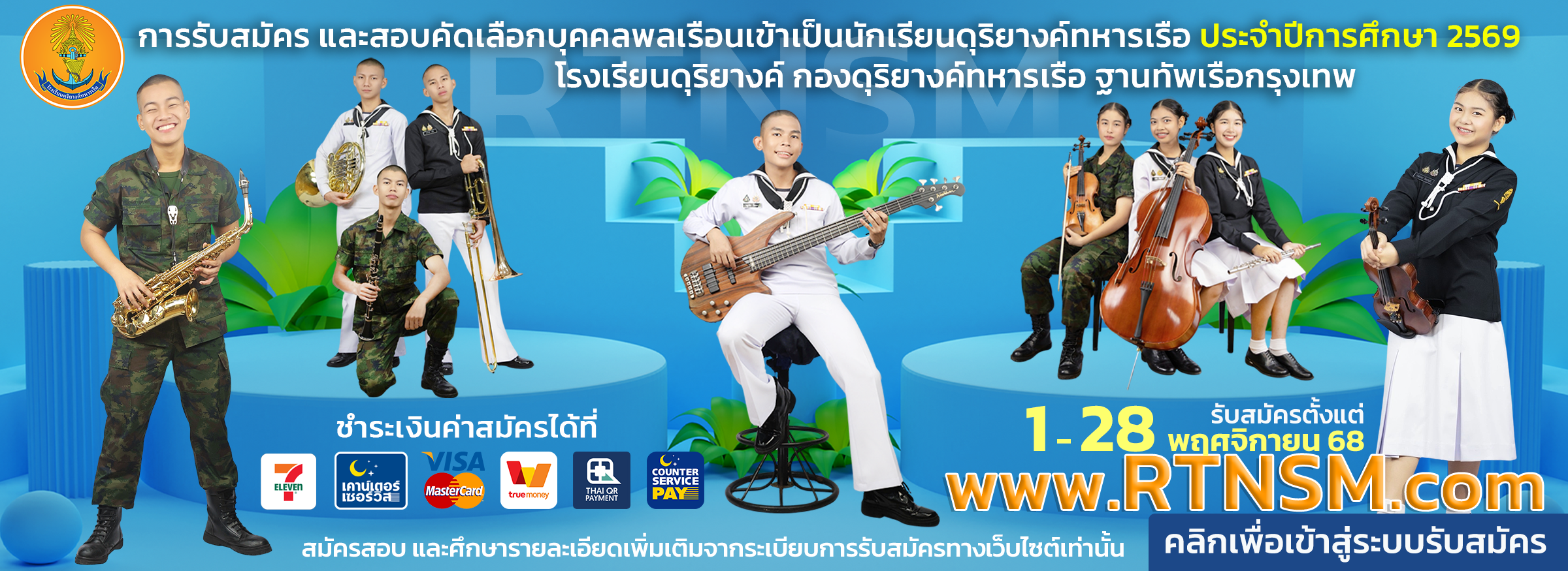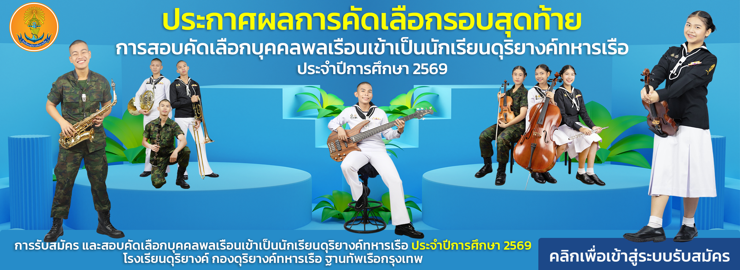 ท่านสามารถติดตามรับชม รับฟัง ข่าวสารประชาสัมพันธ์กิจกรรมนักเรียนดุริยางค์ทหารเรือ และ ร่วมแสดงความคิดเห็น ได้ทาง Facebook โรงเรียนดุริยางค์ทหารเรือ ตลอด 24 ชั่วโมง
